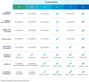 | 1° EQUIPAJE | ZONA 1 | $ 35.000 | $ 45.000 | ||