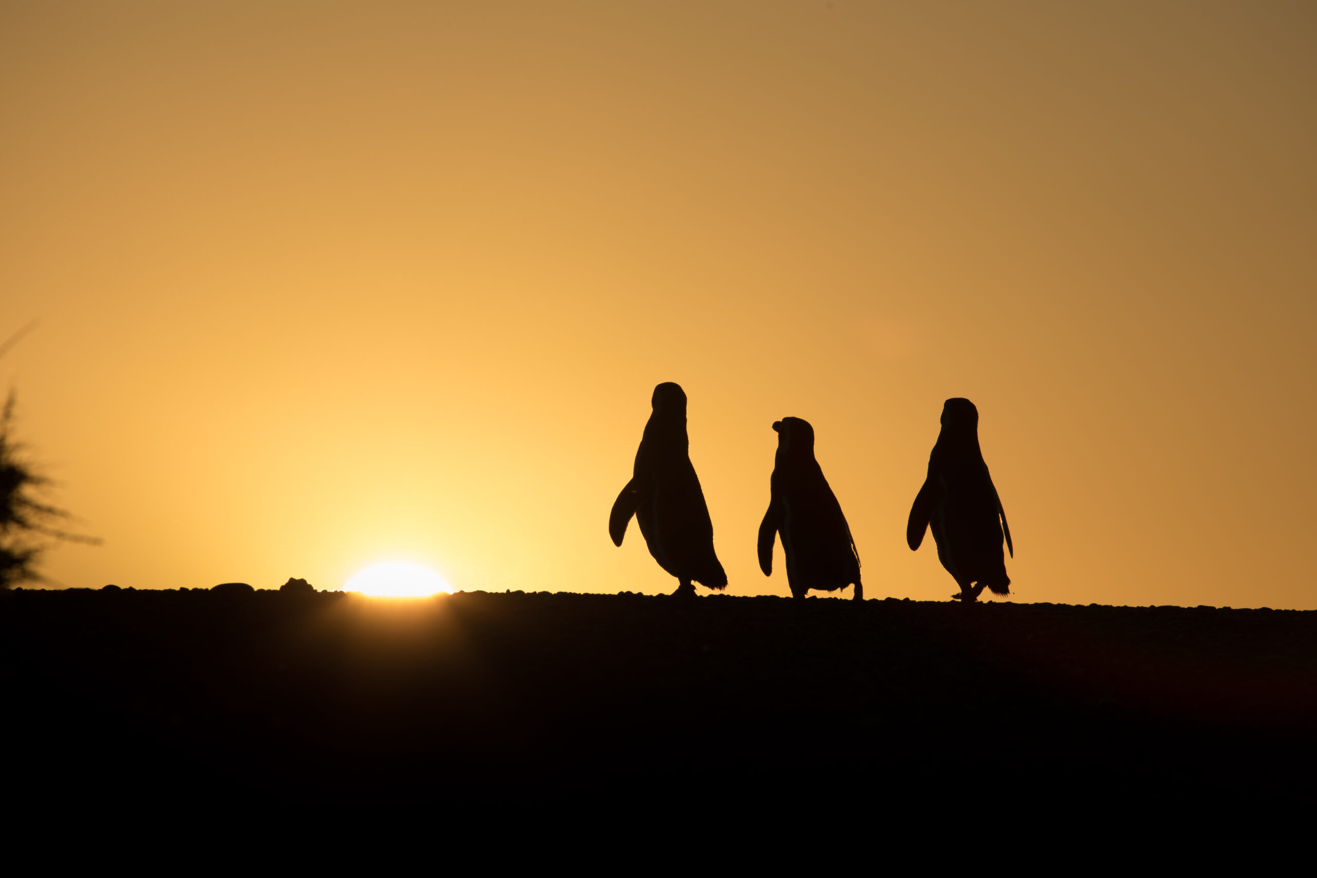 Poco más de 100 km al sur, en Punta Tombo, otra especie cobra protagonismo. La colonia continental de pingüinos de Magallanes más grande del mundo se despliega entre septiembre y abril, con picos de actividad hacia mediados de noviembre, cuando nacen los pichones, y fines de enero, cuando los jóvenes comienzan a explorar los senderos. Caminar entre ellos se siente como adentrarse en un universo que nos supera, donde todo parece seguir su curso más allá de nosotros. Los graznidos, las carreras cortas hacia el mar, los descansos bajo arbustos que sirven de refugio, el constante regreso a los nidos que han utilizado año tras año, son algunas de las cosas que uno puede ver desde allí, tan cerca. La sensación es de familiaridad: los pingüinos no temen a los visitantes, y los observadores aprenden a moverse con respeto, comprendiendo que la verdadera experiencia está en ser testigo de sus rutinas y no en interrumpirlas.
